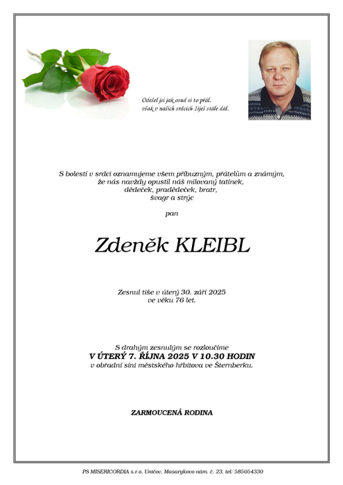 Poslední rozloučení se bude konat v úterý 7. října 2025 v 10:30 hodin.